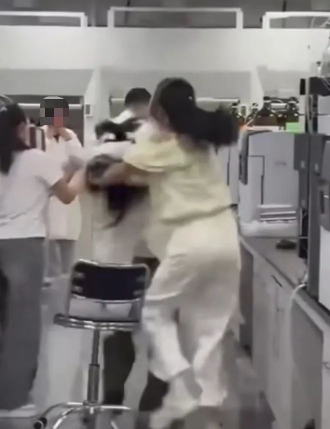 据网传现场视频,在实验室,一身着浅绿色上衣的女子抓住一身着白大褂女子的头部进行猛烈击打,在数秒的击打后,浅绿色上衣女子的一只鞋子飞了出去,白大褂女子被打倒在地,浅绿色上衣女子随后多次用脚踹白大褂女子头部,场面骇人。同时现场有多位身着白大褂的工作人员围观。